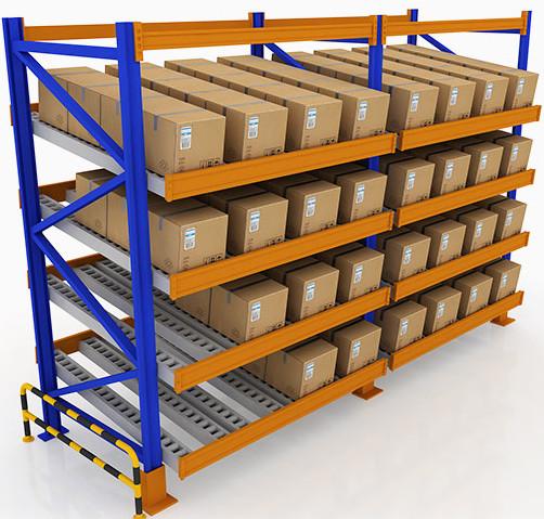 Live storage systems use gravity-fed rollers to move pallets or cartons automatically from the loading side to the picking side. This system improves efficiency and supports FIFO (First In, First Out) inventory management.