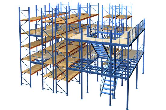 Racking supported mezzanine floors use the racking structure itself as support, combining storage and floor space efficiently.