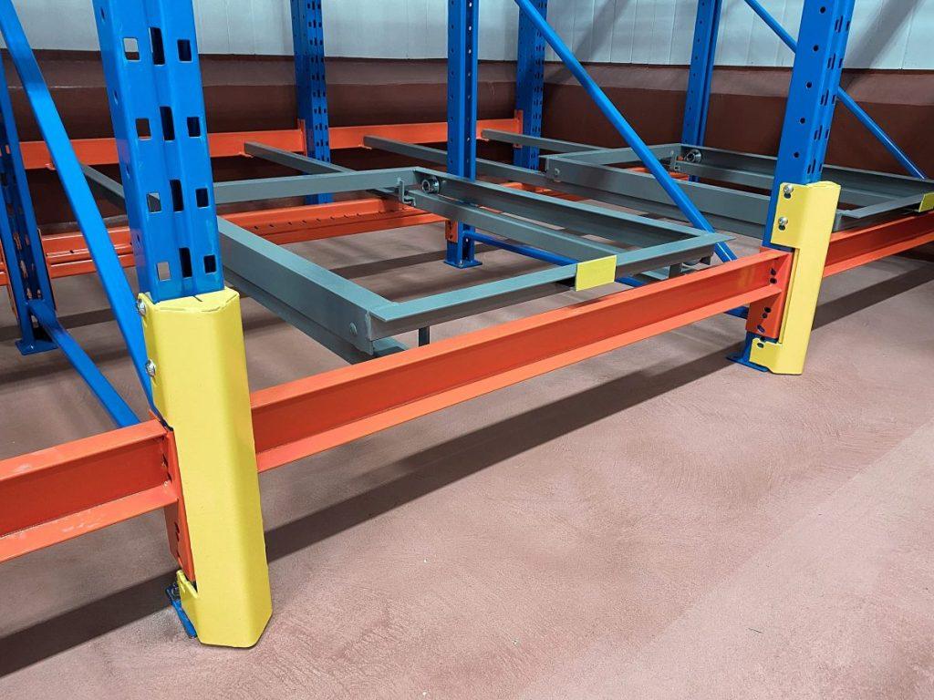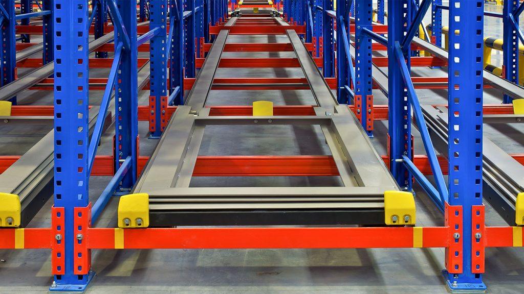 Pushback racking allows pallets to be stored on inclined rails, enabling multiple pallets to be stored in depth while allowing easy access.